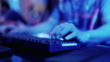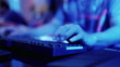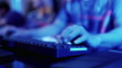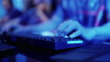 Close-up Hands shot showing a gamer using the keyboard while playing an online shooter video game.