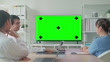 Medical team Asian male and female doctors medical checking x-ray image of patient on computer discussing meeting in hospital. Chroma key technology mock-up green screen, Marketing design concept.