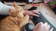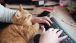 Using a desktop computer with a cat - 4K stock video