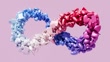Digital generated animation of infinity sign and abstract multicolored shapes (3d icons of heart, speech bubble, like and envelope). The concept of love, online communication and dating.