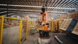 An extensive mechanical robotic arm that facilitates and enhances human productivity within the manufacturing environment. - 4K stock video