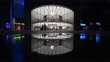 Apple Store at night, the reflection of the Apple Store after the rain. There are not many customers in the store, but many people are looking at the new head-mounted devices. - 4K stock video