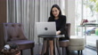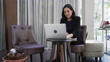 Asian business woman using laptop computer in bright lounge zone . - 4K stock video