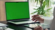 Businessman Using Laptop Computer With A Chroma Key Green Screen In The Office