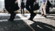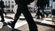 Close-up Led of Business Person Walking on Pedestrian Crossing of the Road, Commuting in Big City with Crowd of People on the Crosswalk, Slow motion