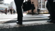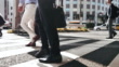Close-up Led of Business Person Walking on Pedestrian Crossing of the Road, Commuting in Big City with Crowd of People on the Crosswalk - 4K stock video