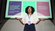 Close up of a visionary female speaker talks on diversity in the workplace topic - 4K stock video