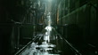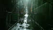 Dark wet urban alleyway in Boston, Massachusetts
