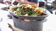 Deep-Fried Snakehead Fish in Spicy Sour Soup in pan is boat shape at restaurant - 4K stock video
