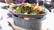 Deep-Fried Snakehead Fish in Spicy Sour Soup in pan is boat shape at restaurant,4K resolution