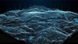 Digital dark orange landscape particle. Futuristic flight through a digital line landscape, Abstract background. 3D Rendering.