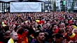 BRUSSELS, BELGIUM - JULY 10: Fans react while watching the broadcast of the 2018 FIFA World Cup Russia semi final soccer match between France and Belgium on July 10, 2018 in Brussels, Belgium. France advanced to the 2018 FIFA World Cup final late Tuesday by beating Belgium 1-0 in a semifinal match in St. Petersburg. (Footage by Dursun Aydemir/Anadolu Agency/Getty Images)