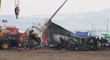 MUAN-GUN, SOUTH KOREA - DECEMBER 30: Firefighters work at the wreckage of a passenger plane at Muan International Airport willon December 30, 2024 in Muan-gun, South Korea. A plane carrying 181 people, Jeju Air Flight 7C2216, crashed at Muan International Airport in South Korea after skidding off the runway and colliding with a wall, resulting in an explosion. Korean authorities said that at least 124 people had died in the crash as of Sunday afternoon. (Footage by Chung Sung-Jun/Getty Images)