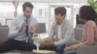 Cheerful male high school teacher or principal gestures while talking with a diverse group of high school students in the school lobby before school. The teacher points while discussing something with the attentive students.