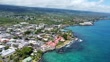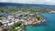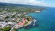Aerial footage of the Kona pier and blue water reef, Kona, Hawaii