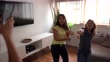 Mother filming teenager daughters dancing at home - 4K stock video