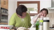 Mother teaching daughter to bake in the kitchen - 4K stock video