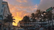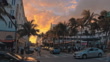 Pedestrians and cars on urban streets of Miami Beach, Miami, Florida, USA. Pan up, real time.