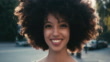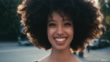 Portrait of a young woman with afro hair in the city at sunset - 4K stock video