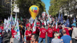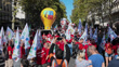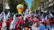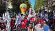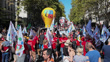 PARIS, FRANCE - SEPTEMBER 18: (EDITORS NOTE: audio/music licensing is not included.) Protesters with FSU and CGT union balloons demonstrate on September 18, 2025 in Paris, France. The strike is coordinated by eight major trade unions who oppose the 40 billion euros cut in the 2026 budget, which they label as "brutal" and detrimental to workers, retirees, the unemployed and precarious workers. (Footage by Photo and Co/Getty Images)
