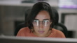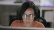 Reading, face and woman at laptop with glasses at night for coding job. Close-up of professional programmer input computer language , search. Coding or online work concepts. - 4K stock video