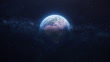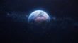 Spinning Planet Earth in Space against milky way and nebula background.Textures taken from: https://visibleearth.nasa.gov/images/57730/the-blue-marble-land-surface-ocean-color-and-sea-ice