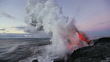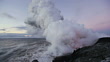 WS Volcano exploding and forming steam cloud by ocean at dawn / Kalapana, Hawaii, USA - HD stock video