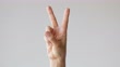 Woman hand showing peace sign isolated on white background - 4K stock video