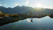 Young Caucasian woman hiking in Norwegian mountains in summer